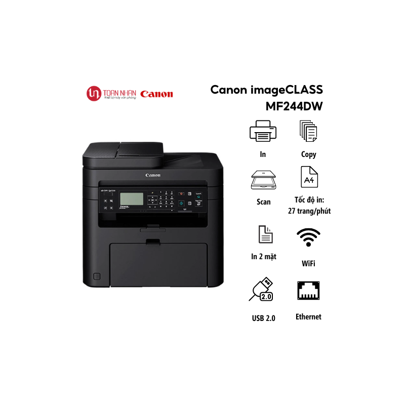 Sở hữu Canon 244DW đồng nghĩa với việc bạn đang có trong tay một trung tâm xử lý dữ liệu thu nhỏ. Thiết bị cho phép in, quét và photocopy chỉ trong một lần chạm. Đặc biệt, tính năng Duplex hỗ trợ in hai mặt tự động là trợ thủ đắc lực giúp tiết kiệm thời gian và bảo vệ môi trường.