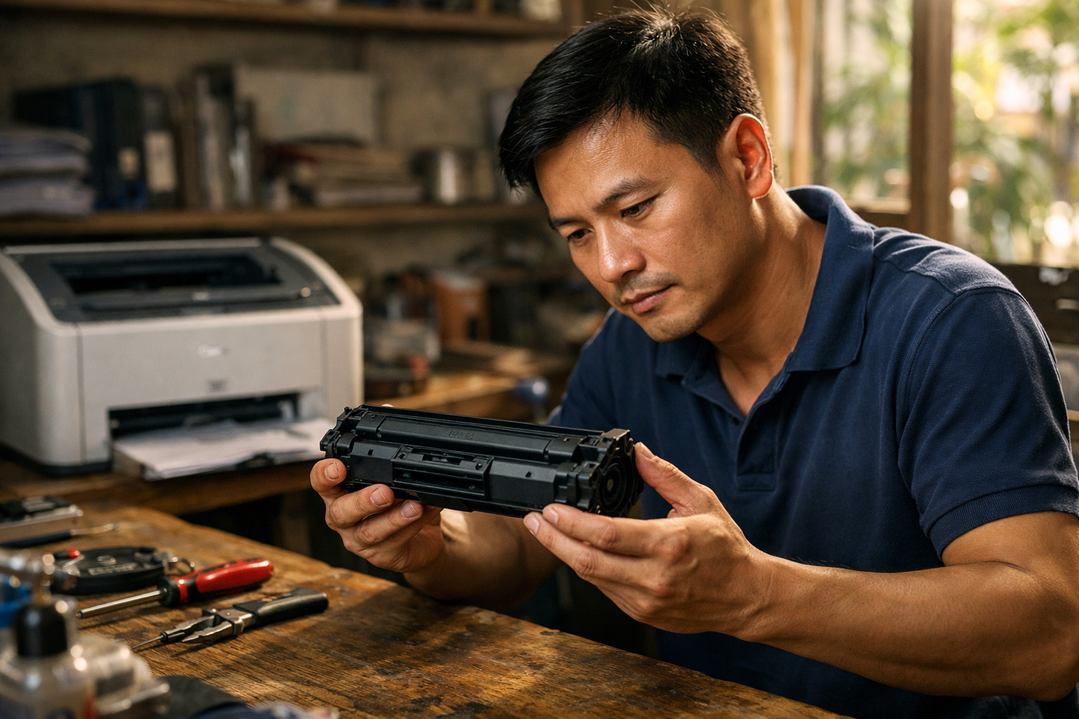Dòng máy in Canon LBP 2900 từ lâu đã trở thành thiết bị không thể thiếu tại các văn phòng ở Việt Nam nhờ độ bền bỉ vượt trội. Để thiết bị này vận hành ổn định, bộ phận quan trọng nhất chính là hộp mực (Cartridge 303). Việc hiểu rõ cấu tạo của nó không chỉ giúp bạn sử dụng máy hiệu quả mà còn dễ dàng bắt bệnh mỗi khi bản in gặp vấn đề.