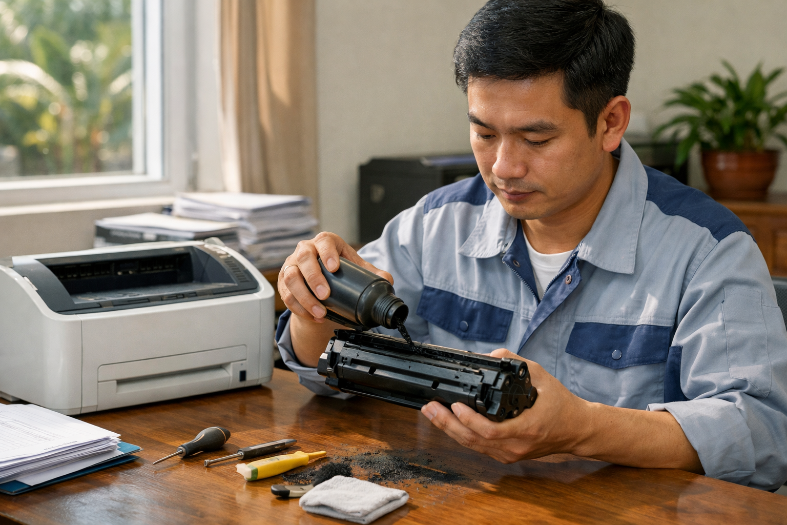 - Nạp mực mới chất lượng cao vào khoang chứa.