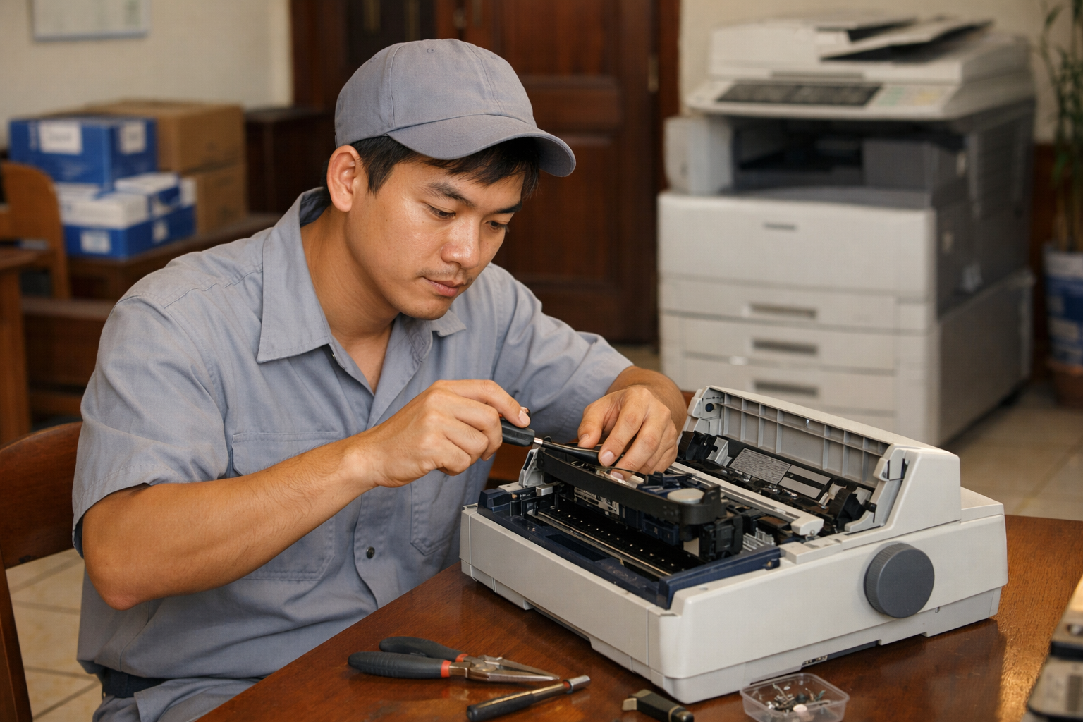 Ngoài ra, Mai Hoàng còn cung cấp các dịch vụ đi kèm như thay ruy băng máy in kim chính hãng, căn chỉnh độ đậm nhạt cho bản in và bảo trì máy in định kỳ để máy luôn hoạt động trong trạng thái tốt nhất. Chúc các bạn xử lý lỗi thành công!