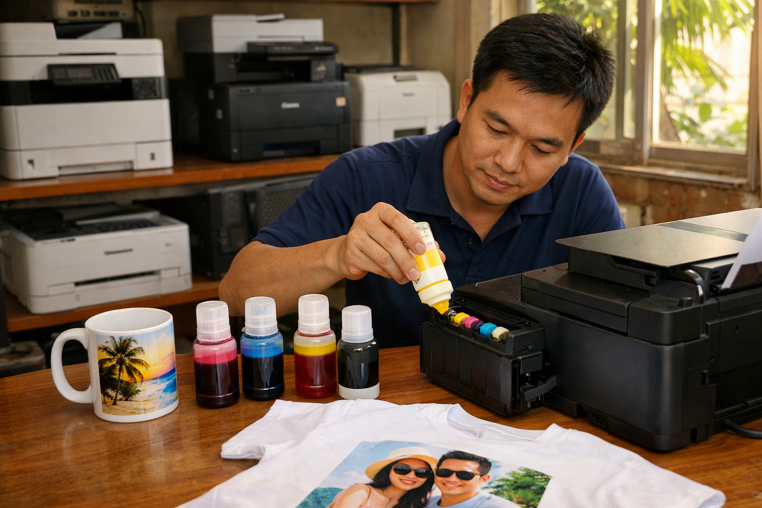 - Tính chuyên dụng của máy in: Một khi máy in đã được nạp mực chuyển nhiệt, rất khó để quay lại sử dụng các loại mực thông thường khác. Mai Hoàng khuyên bạn nên dùng máy chuyên biệt cho mục đích này để bảo vệ đầu phun.