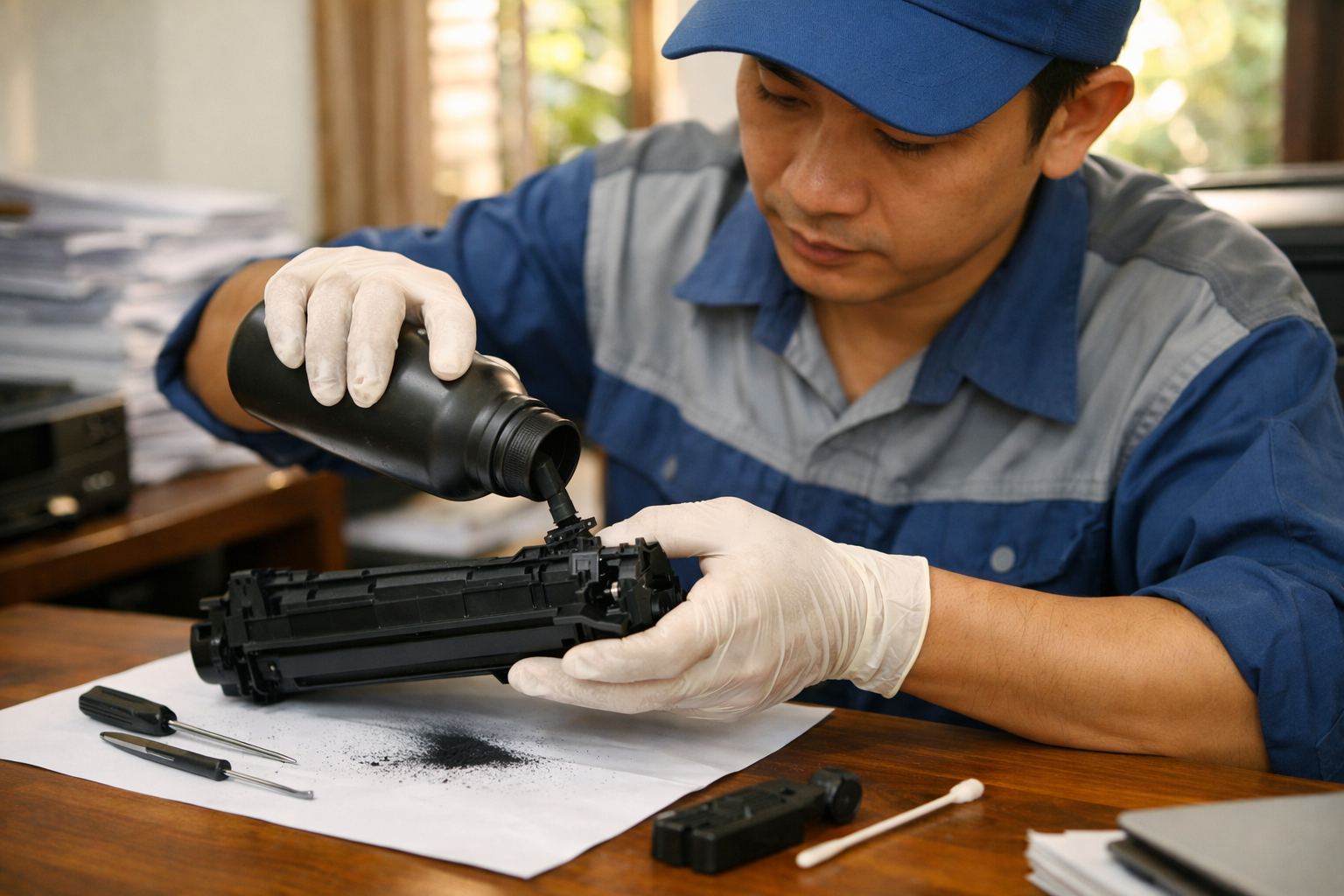Giải pháp của chúng tôi không chỉ giúp quý khách tiết kiệm đáng kể chi phí so với việc mua hộp mực mới mà còn đảm bảo chất lượng bản in luôn sắc nét, đậm màu. Dù quý khách ở bất kỳ quận huyện nào tại TP.HCM, đội ngũ kỹ thuật của Mai Hoàng sẽ có mặt nhanh chóng để xử lý sự cố kịp thời.