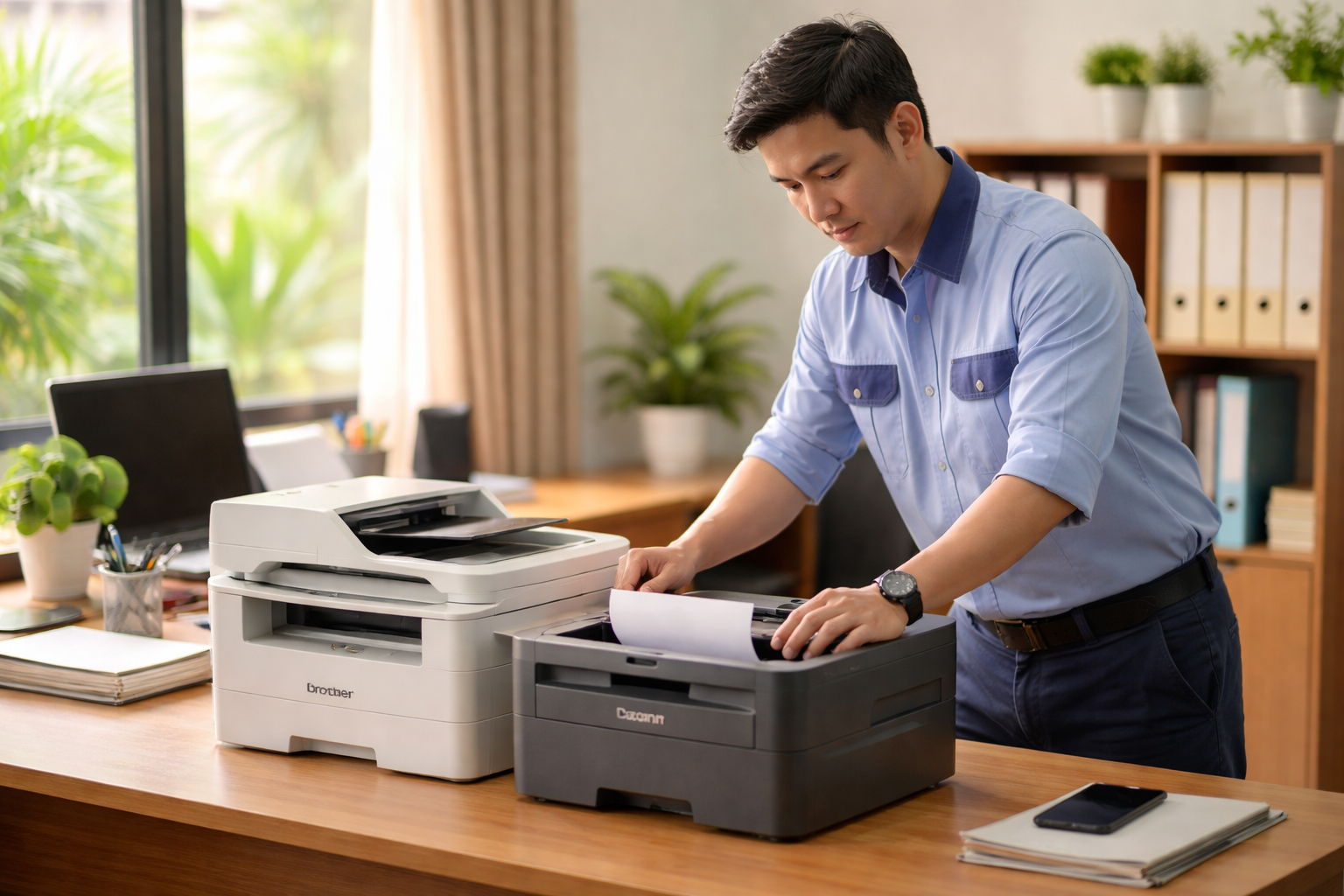Trong mọi không gian làm việc từ quy mô nhỏ đến lớn, chiếc máy in luôn là thiết bị không thể thiếu. Không chỉ dừng lại ở chức năng in ấn giấy tờ thông thường, các dòng máy hiện đại ngày nay còn tích hợp khả năng scan, fax và photocopy, giúp tối ưu hóa quy trình xử lý dữ liệu. Tuy nhiên, giữa hàng ngàn mẫu mã trên thị trường, việc tìm kiếm một sản phẩm vừa bền bỉ vừa tiết kiệm là bài toán khiến nhiều quản lý đau đầu.
